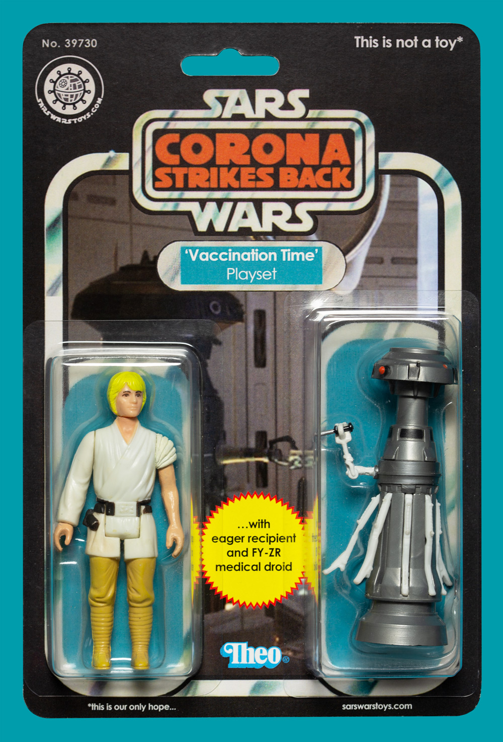 Original figures: ‘Luke Skywalker’ (Kenner, 1977) and ‘FX-7 (Medical Droid)’ (Kenner, 1980).